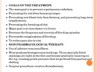 The goals of DVT treatment are to prevent the clot from growing, breaking loose and causing a pulmonary embolism, and to reduce the risk of future clots. Treatment options include: